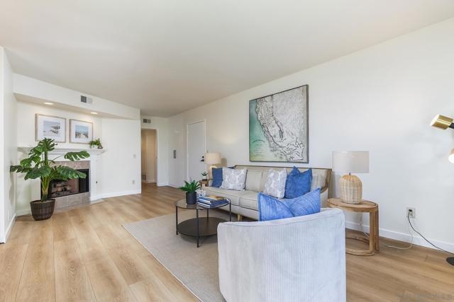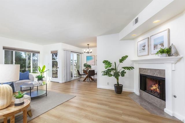 Welcome to 3888 Groton Street #3! This rare single-level end unit with 2-bedroom, 2-bath condo offers 1,018 sq. ft. of comfortable, thoughtfully updated living space. Freshly painted with brand new flooring throughout, it’s move-in ready and filled with natural light. The open living area features a cozy fireplace, perfect for relaxing or entertaining—while the well-appointed kitchen is ideal for both everyday cooking and hosting. The primary suite includes a private ensuite bath and a spacious walk-in closet, and the spacious second bedroom is directly across from the hall bath, great for guests or a home office. Enjoy morning coffee or evening relaxation on your private balcony. An in-unit washer and dryer add everyday convenience. 2 parking spaces! Community amenities include a sparkling pool, spa, clubhouse, and covered carport parking. Ideally located just steps from Barron’s Market and close to shopping and dining, this home offers the perfect blend of comfort and convenience in the heart of Point Loma.