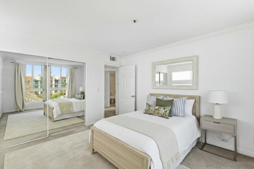 Your own quiet corner in the heart of North Park. Perched on a coveted top-floor corner, this rarely available 2-bed, 2-bath residence showcases sweeping, unobstructed views that stretch endlessly across the horizon — with even a subtle peek of the ocean on clear days. Expansive windows flood the generous floor plan with natural light, while a fresh modern palette and upgraded lighting elevate the space. A private patio extends the living area outdoors, pairing panoramic sunsets with a front-row seat to the neighborhood’s vibrant energy. Just steps from the vibrant core of North Park, enjoy acclaimed restaurants, craft cocktail bars and breweries, independent shops, and neighborhood events. Practical perks include underground parking, a dedicated storage cabinet, and in-unit laundry — rare conveniences in this sought-after urban setting. Major freeways are minutes away, offering easy access to downtown, beaches, and beyond. Set within a boutique 30-unit building, the residence feels tucked away and serene. Thoughtful design and minimal shared walls create a rare sense of privacy — a quiet retreat above the neighborhood below. The building is nearing completion of a comprehensive exterior refresh, positioning it as one of North Park’s standout residential communities.