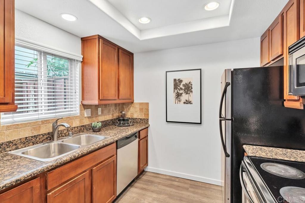 WELCOME TO YOUR 2 BED 2 BATH CONDO nestled just a BLOCK AWAY FROM UNIVERSITY AVE, offering a vibrant and convenient lifestyle in the HEART OF NORTH PARK. Perfect starter home or great for an investment/rental property! 1 CAR GARAGE for parking convenience with access to the unit plus a driveway in front of the garage can be used for a second vehicle. PRIVATE LAUNDRY ROOM. This delightful unit also features an outdoor area accessible from the primary bedroom and dining room, providing an area for outdoor enjoyment. Recently renovated primary bathroom with modern touches and high end chilling fans. New luxury vinyl plank flooring through the unit. The condo is part of a fully fenced and gated complex, ensuring safety and peace of mind. Enjoy low maintenance living- HOA covers water, sewer, trash, roof, and landscaping. The complex consists of only 7 units, creating a close-knit atmosphere. Residents can also take advantage of the communal space, ideal for pets or outdoor gatherings. UPDATED with NEW CARPET and PAINT. Don't miss this opportunity to own a piece of North Park's vibrant community, with its trendy shops, dining options, farmers markets, and San Diego attractions such as Balboa Park and the San Diego Zoo just moments away!