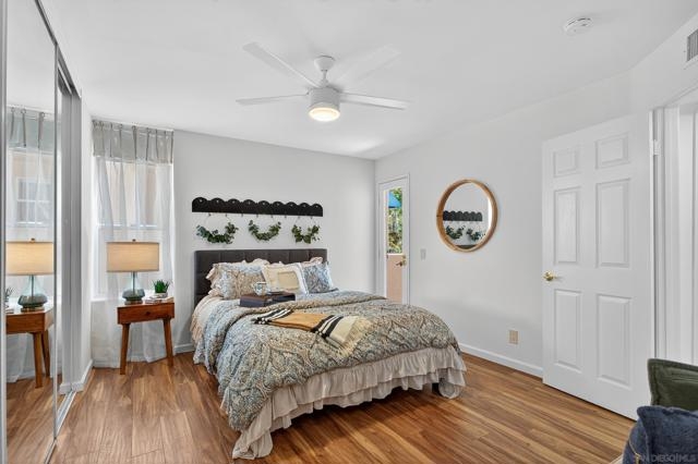 Located on the border of University Heights and North Park, this condo offers the best of two of San Diego’s most walkable neighborhoods with a Walk Score over 95. From your front door you can stroll to coffee shops, restaurants, markets, and music venues, or head into nearby Hillcrest, Mission Hills, or Mission Valley. Balboa Park and the San Diego Zoo are just minutes away, and the beach is less than 20 minutes by car. The neighborhood is known for its lively café culture, craft breweries, and local eateries that make everyday life feel like part of the San Diego experience. This light filled end unit condo has windows facing east, south, and west that bring in natural light and cool afternoon breezes. Inside you’ll find two bedrooms, two bathrooms, and a two car tandem garage. The home features laminate wood flooring, tile in the bathrooms, fresh paint, recessed lighting, ceiling fans, and central heating and AC.