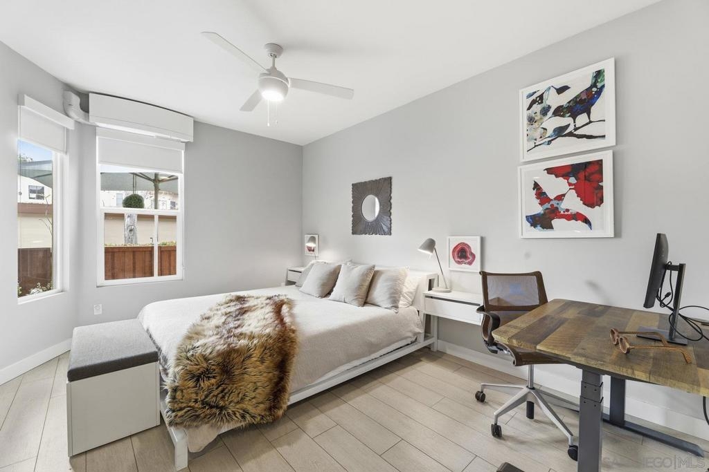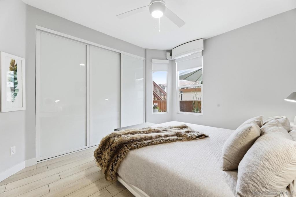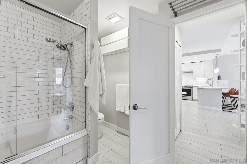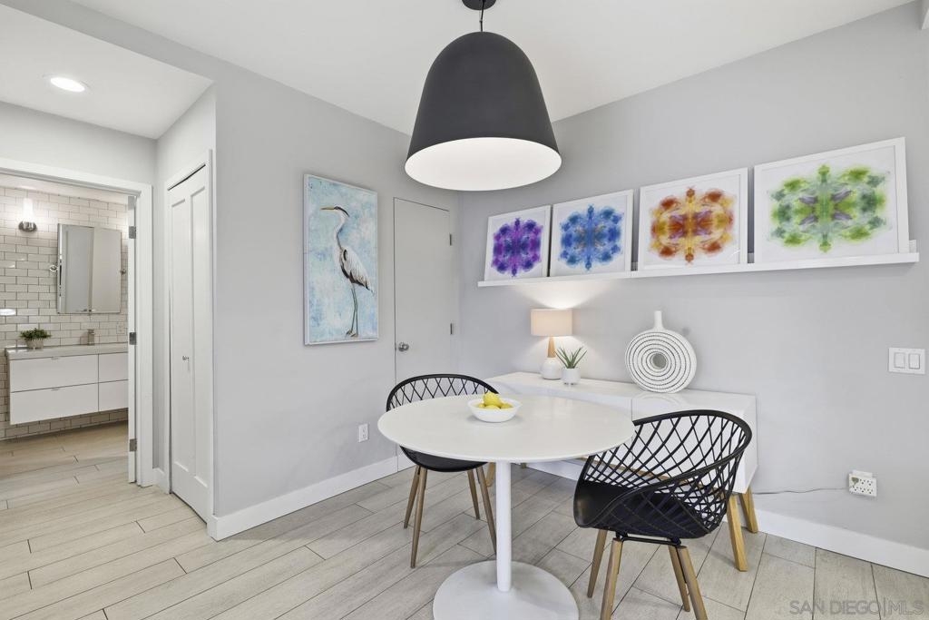 Look no further - this extensively remodeled and highly stylish 1 bedroom condo is finished to the highest standard. Thoughtfully upgraded throughout, featuring a newly installed zoned A/C system and a spacious, private fenced in patio ideal for indoor-outdoor living. Tiled flooring spans the entire residence, complemented by a cozy gas fireplace and an open concept living, dining, and kitchen layout with optional counter seating. Designer kitchen showcases stunning quartz countertops with newly designed counter-height sitting area and added counter space, modern pendant lighting, classic subway tile backsplash, stainless steel appliances, and sleek contemporary cabinetry. Additional seller upgrades include high-end mini-split system, CA closet system, full-size washer and dryer, garbage disposal, ceiling fans, expanded closet storage, and a smart-lock front door. Community amenities include a resort-style pool- heated year round, two hot tubs, tennis courts, sauna, and scenic walking paths and greenbelts surrounding tranquil lakes. Ideally located just minutes from Del Mar, beaches, One Paseo, Del Mar Highlands Shopping Center, and major freeways. Walking distance to shopping, grocery stores, Starbucks, and local restaurants—this home truly offers the best of coastal living and convenience.