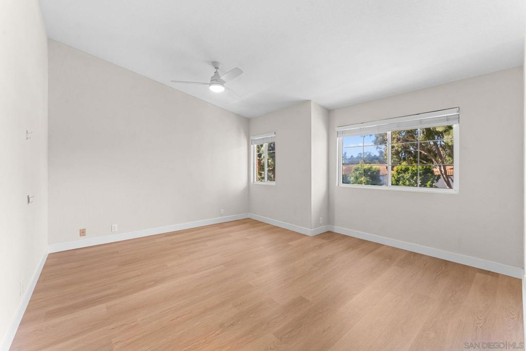 This beautifully updated 3-bedroom townhome is set within the sought-after Madrid community at La Jolla Colony and offers tranquil views of the lush, tree-filled surroundings. Thoughtful upgrades include gorgeous plank flooring throughout and soaring ceilings that enhance the home’s sense of space and openness. The remodeled kitchen opens seamlessly to the main living spaces, making it ideal for both everyday living and entertaining. The inviting living room is anchored by a cozy gas fireplace and features a sliding glass door that opens directly to a private, gated patio—perfect for indoor-outdoor living, morning coffee, or evening relaxation. The spacious primary suite offers a large walk-in closet and a well-appointed en-suite bathroom, while an additional bedroom also features its own walk-in closet, providing excellent storage and flexibility. Residents enjoy resort-style amenities including a pool, relaxing spa, beautifully maintained landscaped grounds, and ample guest parking, all complemented by low HOA dues that enhance long-term value. The home also features a convenient 2-car attached garage, offering secure parking and additional storage. The Madrid community is ideally positioned near neighborhood shopping, local parks, UCSD, and major freeway access, making daily errands and commuting effortless. This prime La Jolla Colony location offers a rare balance of peaceful, community-oriented living with close proximity to beaches, dining, and cultural destinations—delivering a comfortable, low-maintenance lifestyle in one of La Jolla’s most desirable settings.