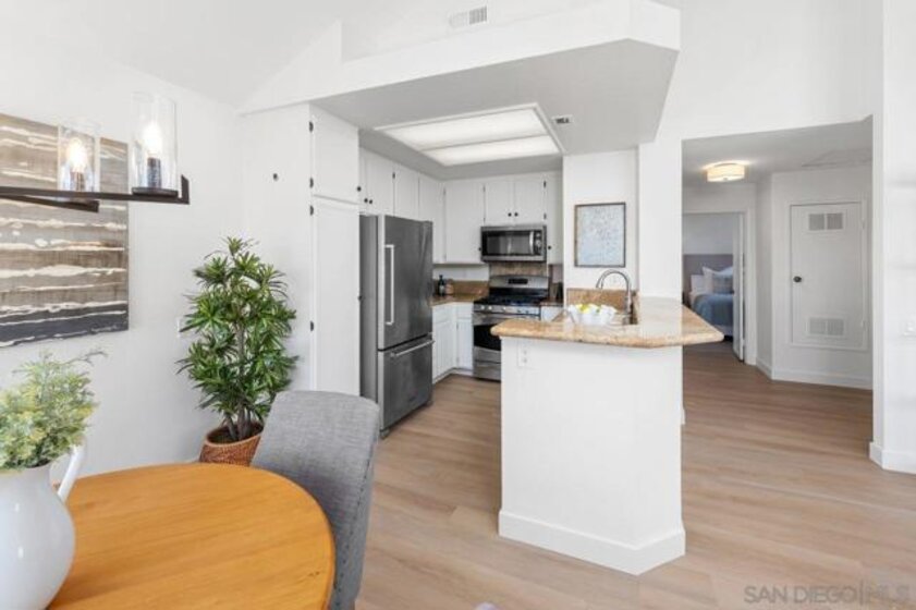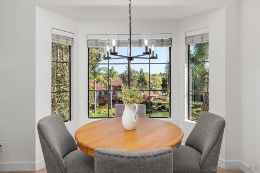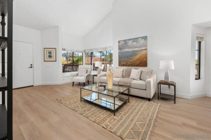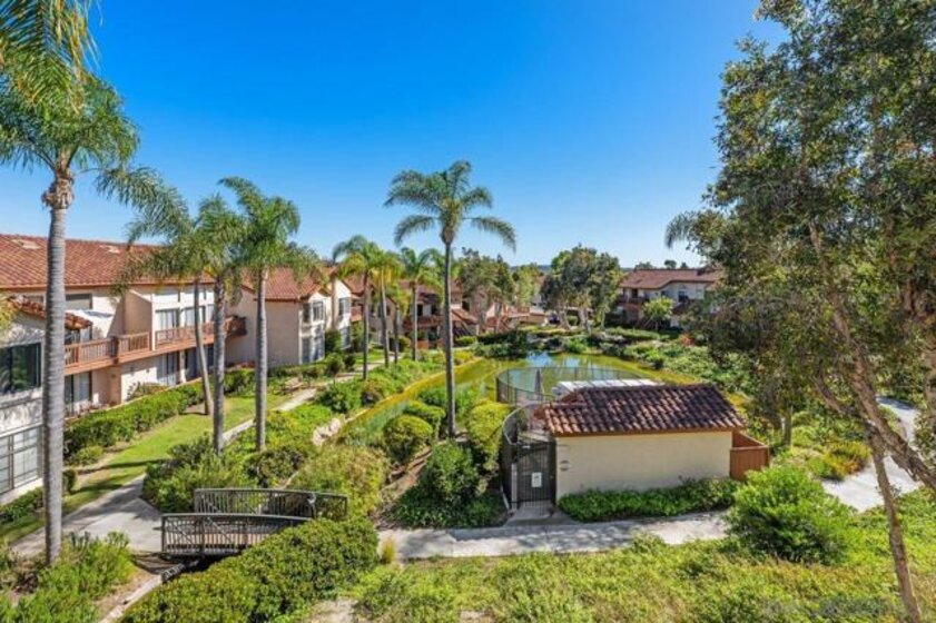 Exceptional upper corner residence in the highly sought-after Arborlake community of Carmel Valley. This light-filled single-level 2-bedroom, 2-bath home features soaring vaulted ceilings that create an open, airy ambiance throughout. Ideally positioned with tranquil lake views just outside your door, the home offers a rare blend of privacy, serenity, and natural beauty. Thoughtfully refreshed, the interior showcases new luxury vinyl plank flooring, fresh designer paint, air conditioning, and updated lighting, delivering a clean, modern aesthetic. The kitchen is appointed with granite countertops and stainless steel appliances, seamlessly opening to the main living area—perfect for both everyday living and effortless entertaining. Enjoy a premier location within Arborlake, known for its lush, park-like setting with scenic lakes, streams, and walking paths. Resort-style amenities include a clubhouse, pool, two spas, and tennis courts. Ideally located near shopping, dining, and Carmel Grove Park, and just minutes to Torrey Pines State Beach and major commuter routes. Situated within the boundaries of top-rated schools including Torrey Pines High School and Canyon Crest Academy. A rare opportunity to own in one of Carmel Valley’s most desirable communities.