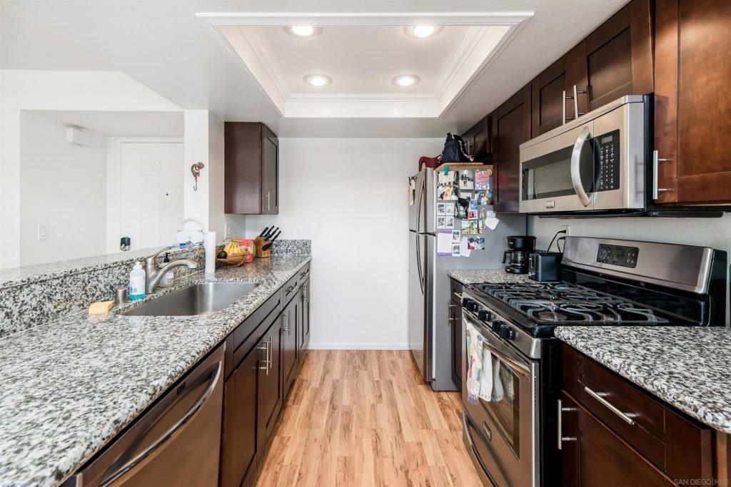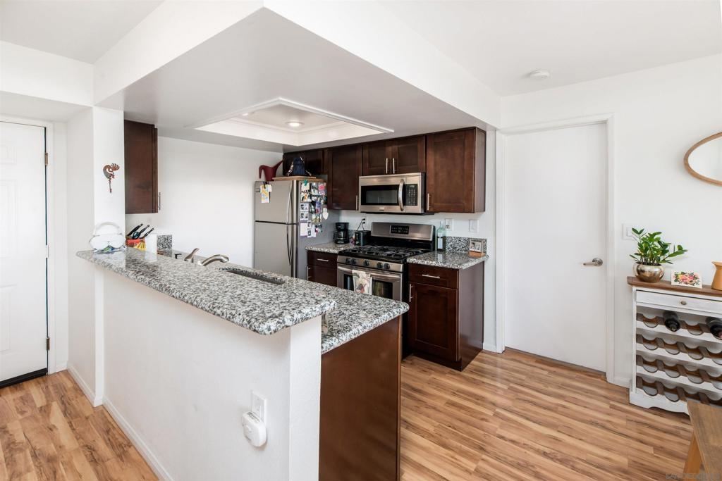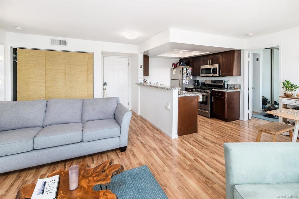 Discover this bright and cozy turnkey condo in the heart of North Park. This top floor, SW facing corner unit offers ample sunlight and cross-breezes, along with a balcony boasting mountain views. Experience the lively neighborhood with breweries, coffee shops, restaurants, and parks at your fingertips. Enjoy 2 primary bedrooms, granite countertops, stainless steel appliances, Nest Thermostat, dual pane windows, as well as updated AC, flooring, and plumbing. Benefit from 2 reserved parking spaces in a secure garage w/ easy elevator access up to the unit. Additional storage space, Google Fiber internet and easy freeway access complete this urban oasis.
