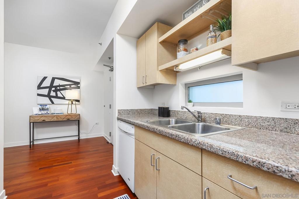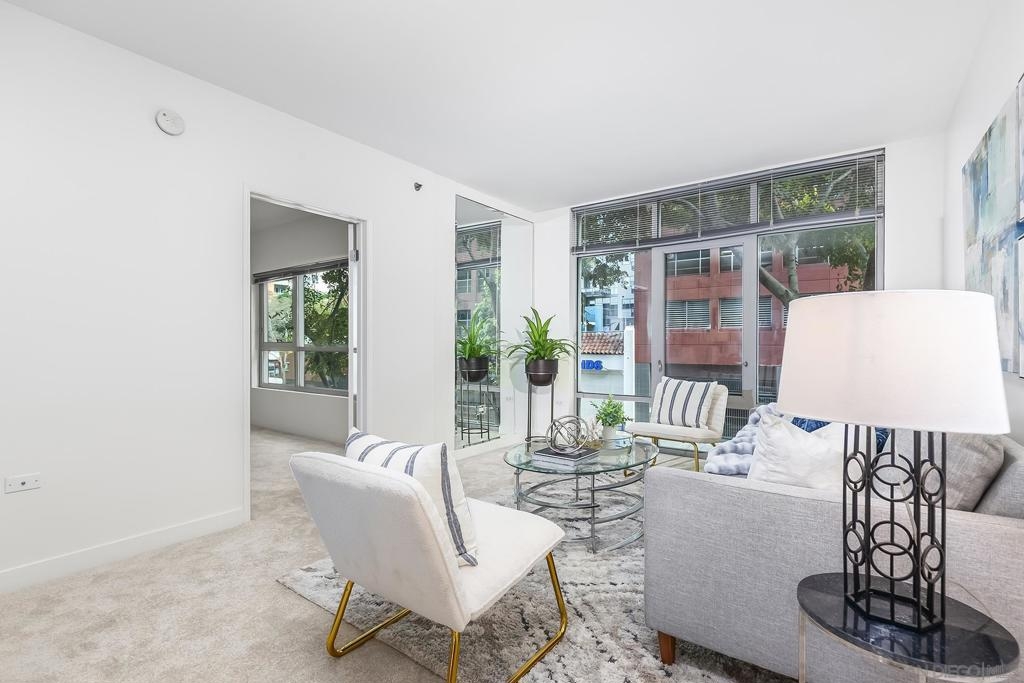 Welcome home to Aqua Vista — where your San Diego story begins! If you've been dreaming of owning your first home in one of the most vibrant cities in the country, this is the one. Priced as the lowest unit in the complex and with an owner ready to make a deal, this is a rare, low-barrier entry point into San Diego homeownership — and into one of its most beloved neighborhoods. This bright and thoughtfully laid-out 766-square-foot, one-bedroom, one-bath condo puts you right in the heart of it all. Nestled next to Little Italy, you're steps from charming cafés, world-class restaurants, weekend artisan markets, and peaceful waterfront walks. Everything that makes San Diego special is practically at your doorstep. Inside, the open-concept living, dining, and kitchen areas make the space feel larger than it is — easy to style, easy to love, and perfect for hosting friends or simply unwinding with a glass of wine after work. The galley-style kitchen comes equipped with a refrigerator, microwave, and dishwasher, so you're move-in ready from day one. And the building? It truly delivers. Enjoy a rooftop pool and spa with skyline views, a fitness center, outdoor barbecue areas, and two welcoming lobbies. Valet garage parking, in-unit laundry, and air conditioning mean less hassle and more time living your best San Diego life. First-time buyers — this is your moment. Aqua Vista is waiting to welcome you home.