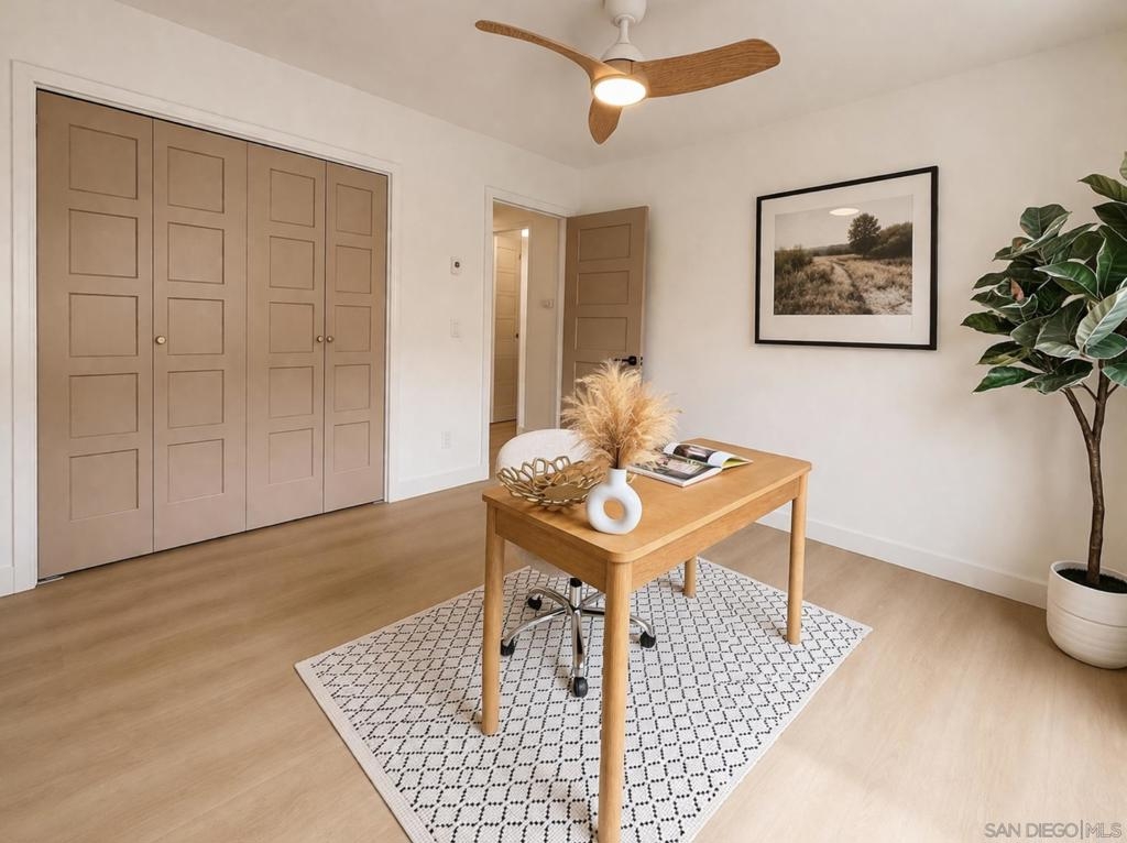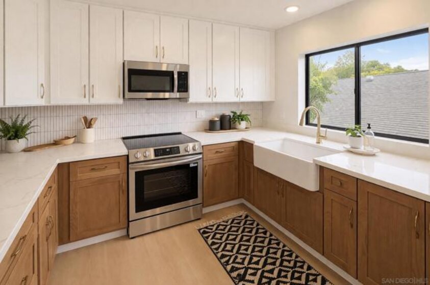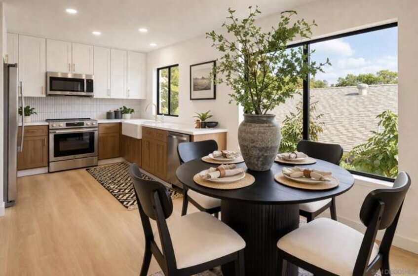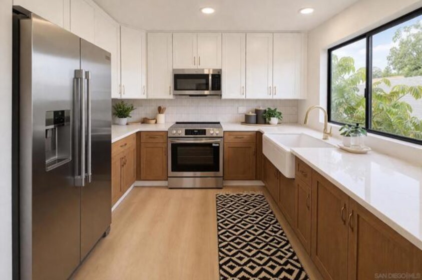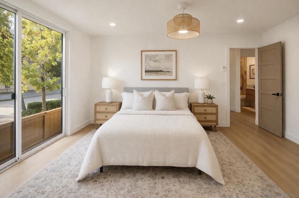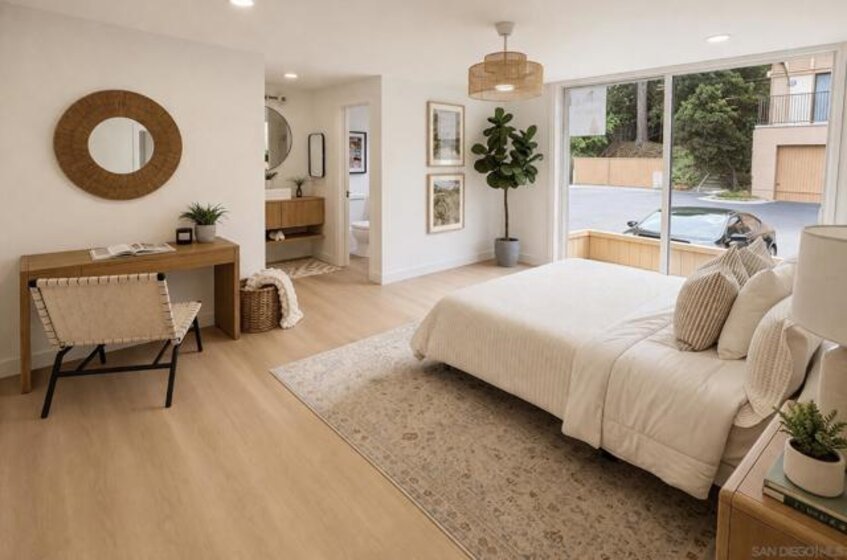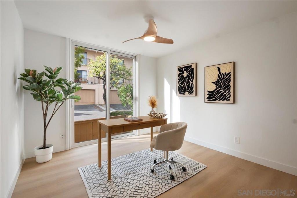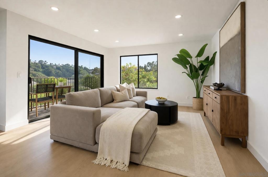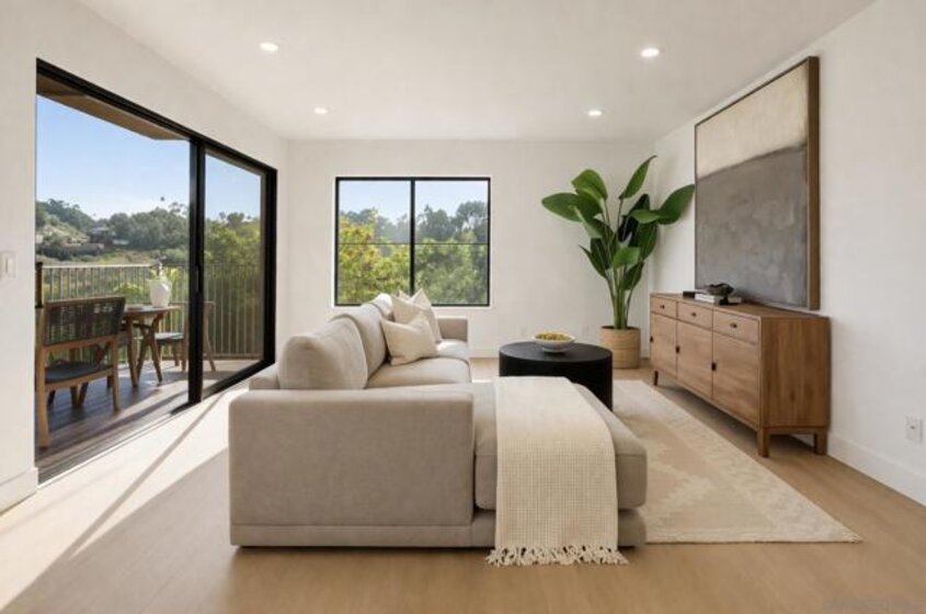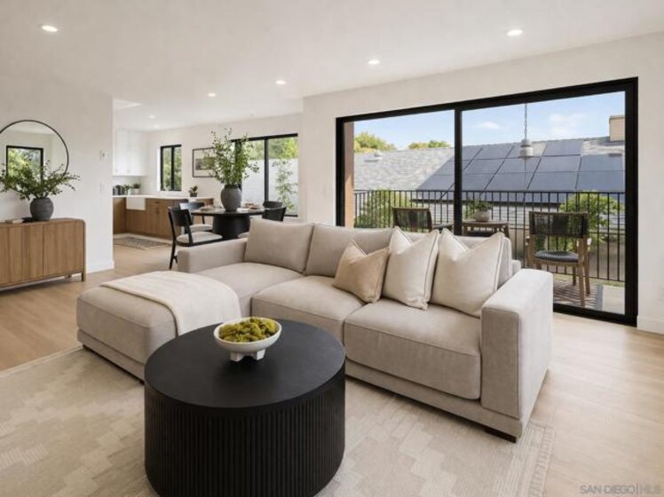 Immaculate Hillcrest condo with fully paid-off solar and serene canyon views, located in the heart of one of San Diego’s most sought-after walkable neighborhoods. This rare opportunity offers the perfect balance of urban living and peaceful natural surroundings. Enjoy being moments from Hillcrest’s beloved restaurants, cafés, nightlife, and parks while coming home to sweeping natural scenery rarely found in city living. Thoughtfully updated with modern materials and design-forward finishes, the home welcomes you with a spacious open-concept living area that frames spectacular canyon views and extends seamlessly to a private balcony—perfect for relaxing or entertaining. The renovated kitchen features a custom-built arched coffee bar, new stainless steel appliances, new cabinetry, and quartz countertops, combining style and functionality. The exceptionally spacious primary suite includes a walk-in closet and a private en-suite bathroom with a newly tiled walk-in shower and floating vanity. Both bedrooms feature floor-to-ceiling sliding glass doors, filling the home with natural light and creating bright, airy spaces for comfortable living or a work-from-home office. Additional conveniences include in-unit laundry hookups, and a separate utility closet. Ideally positioned as a ground-level end unit with one assigned parking space plus multiple guest parking spaces ensure you and your guests never have to struggle with parking, a rarity in Hillcrest! The home also features SolarTech solar panels installed in 2024 with a 25-year warranty fully offsetting electricity costs! The home also features SolarTech solar panels installed in 2024 with a 25-year warranty, fully offsetting electricity costs and allowing you to avoid SDG&E power bills while enjoying the benefits of an energy-efficient San Diego home.