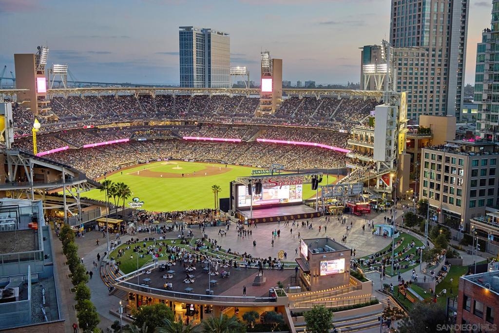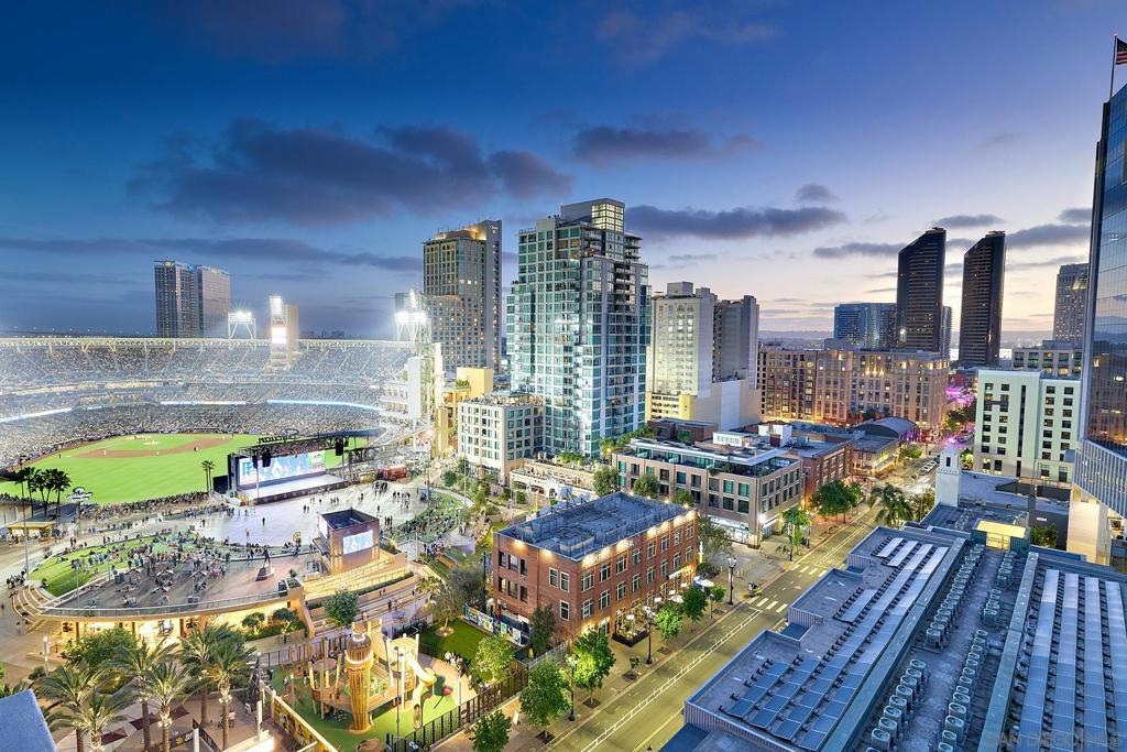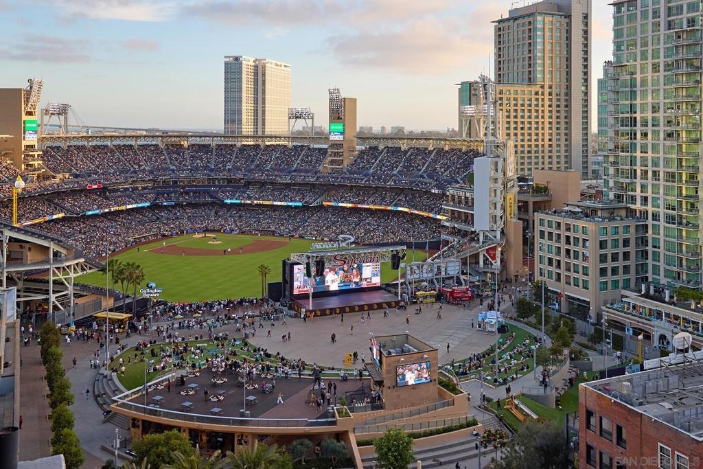 Batter Up! Step into urban luxury on the 13th floor of Diamond Terrace, offering breathtaking views of Petco Park and Gallagher Square from your private balcony—perfect for catching games, concerts, or stunning sunsets. This sleekly remodeled home features modern finishes, high ceilings, in-unit laundry, gated assigned parking, and spacious storage locker. Exclusive access to the rooftop terrace with BBQ, dining areas, fitness center and lounge, all just steps from downtown’s vibrant dining and entertainment scene. Just in time for baseball season, this stunning 13th-floor corner unit at Diamond Terrace is a home run! With JAW-DROPPING views of Petco Park, Gallagher Square, City, Coronado Bridge, and even the islands, you’ll have front-row seats to all the action—right from your private balcony. Enjoy the best of urban living with the convenience of an in-unit washer/dryer, gated assigned parking, a generously sized storage locker, and spacious rooms featuring soaring ceilings. A stylish top-to-bottom designer remodel! Common area rooftop terrace, with dining areas and BBQ, as well as a fitness center and lounge. The ideal location for easy exploration of endless dining and entertainment options that downtown has to offer. "Park at the Park" across the street is perfect for your pup. VA Approved,1 pet allowed under 100lbs, 2nd pet possible with HOA approval. Check out the virtual tour!