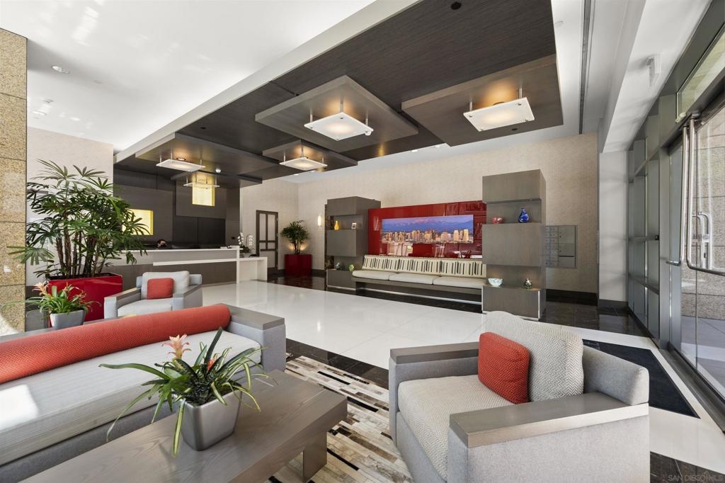 LUXURY URBAN LIVING! Welcome to The Prestigious Pinnacle, situated in San Diego’s coveted Marina District, steps from the Waterfront, Trolley Station, Seaport Village, the Rady Shell at Jacobs Park, Gaslamp, Petco Park, and Little Italy. High End Interior Finishes. This beautifully maintained residence features 10-foot ceilings, gleaming marble flooring, and floor-to-ceiling windows that bathe the space in natural light. The open kitchen showcases premium Snaidero Italian Cabinetry, an integrated Sub-Zero refrigerator, granite countertops, new Bosch Dishwasher and Gas Cooktop, plus a convenient Instahot dispenser. The spa-inspired bathroom features premium marble tile, a Jacuzzi tub/shower combo, and updated Kohler fixtures. The spacious bedroom offers new carpet and 2 closets for ample storage. Enjoy San Diego's perfect weather on the private, expansive 25ft x 7.5ft (Approx.) balcony overlooking the beautifully landscaped pool deck. One assigned parking space and storage unit included. Resort- Styled Amenities: The Pinnacle delivers an unparalleled lifestyle with full-service concierge, 24 hour security personnel, state-of-the-art fitness center with sauna and steam room, heated lap pool and whirlpool, outdoor kitchen with BBQ area, remodeled community room with full kitchen, conference room, bicycle storage, and guest suite for visiting family and friends. On-site HOA management office. This turnkey residence offers the ideal urban lifestyle! Just move in and start enjoying the Pinnacle of downtown living, where sophistication, security, and location converge.