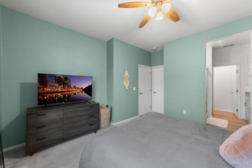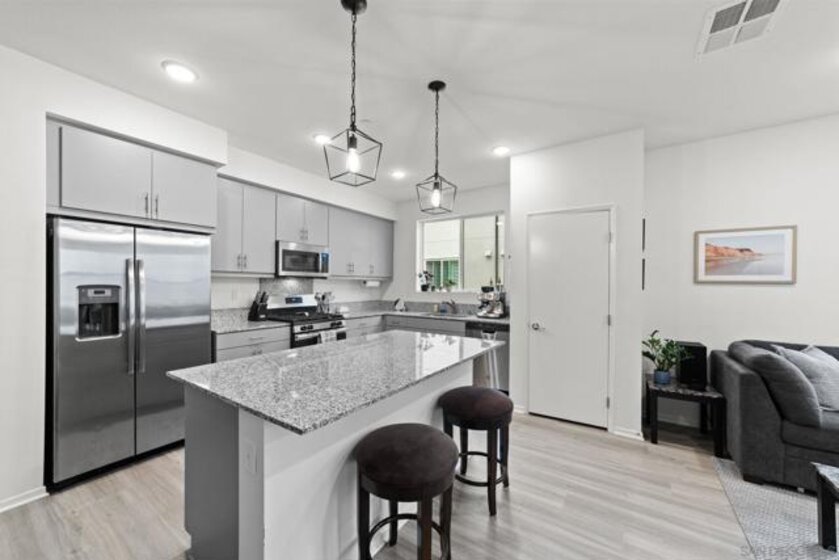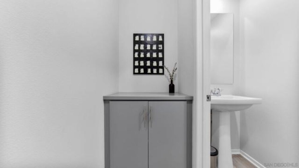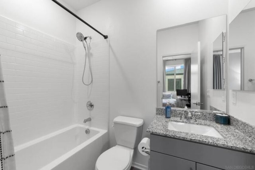 Welcome to 5502 Sandcliff Lane #147, a stunning corner end-unit Solmar Plan 2 model home—one of the last model homes sold in the sought-after Playa del Sol community and VA financing approved! This beautifully upgraded residence features 2 bedrooms, 2.5 baths, and a 2-car garage across approximately 1,310 sq. ft. of thoughtfully designed living space. Step inside to an open-concept main level filled with natural light, highlighted by a sleek modern kitchen with stainless steel appliances, quartz countertops, a large center island, and designer cabinetry. The primary suite includes a spa-like ensuite bath with dual vanities and a generous walk-in closet, while the secondary bedroom offers flexibility for guests, family, or a home office. Enjoy smart-home features including smart switches, smart garage door, and smart water heater for modern convenience. The community boasts resort-style amenities—an impressive clubhouse with a state-of-the-art gym, a heated pool complex with spa and hot tub, and two clubhouses (one for everyday use and another available for private events). Ideally located near shopping, dining, entertainment, and top-rated schools, with easy access to the 805 and 905 freeways, this home offers the best of modern South San Diego living—stylish, smart, and community-focused.