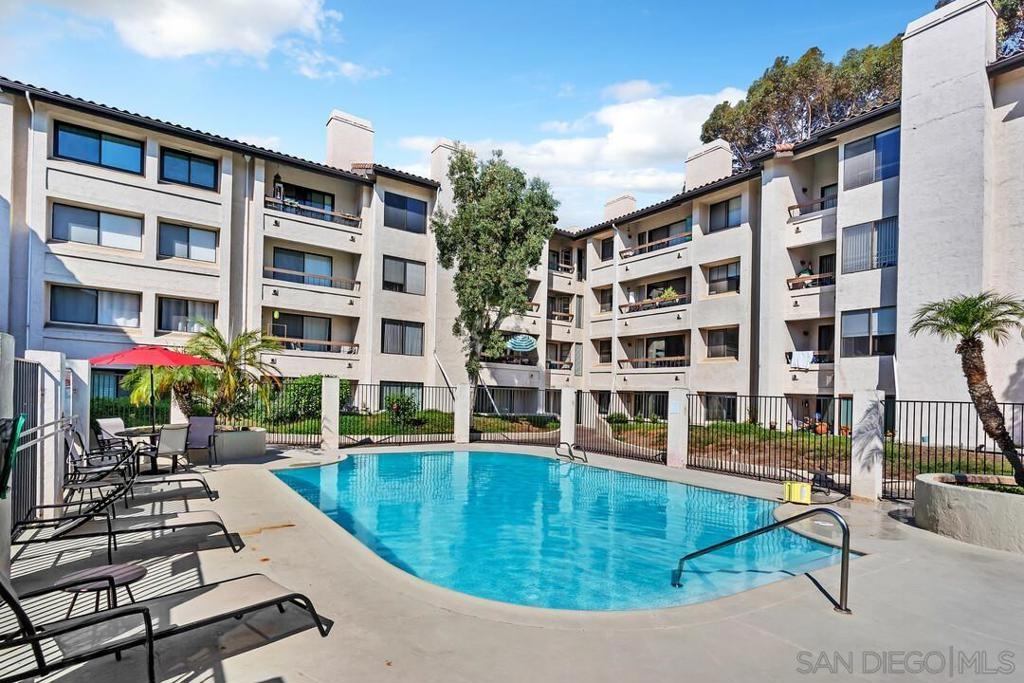 Look no further. This 3rd floor, courtyard facing unit at Presidio Place offers a perfect blend of modern upgrades, convenience and amenities to fit your lifestyle. The unit is located close to the elevators and to the storage unit that the new owner will get to use. In the kitchen you’ll find a vibrant shade of teal on the cabinets, granite counter tops, a new refrigerator, new stove and a new dishwasher. The layout flows perfectly with a split primary bedroom layout. At each end of the unit, the bedroom has new dual pane windows and quality PVC shutters, so you can open up and let the breeze in or glimpse out at the garden. There are a new stackable washer and dryer in the unit, and the second bathroom has been recently remodeled. The kitchen opens to the living which has a new dual pane sliding glass door and gas fireplace. Presidio Place is a community full of amenities such as tennis courts, pickleball courts, pools, hot tubs, a basketball hoop, a ping pong table and a rec center. There are numerous ponds throughout the community which add to the resort feel. The property is centrally located, just minutes from the 163N, the trolley station, Fashion Valley mall, USD, Point Loma, Mission Bay and more. Residents can, for an additional fee, utilize the community garden to grow fruits and vegetables. Parking is one assigned spot in the parking garage, and one car may also park in any open guest space.