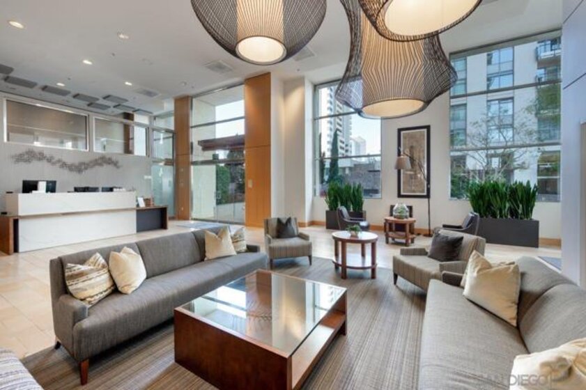 Don’t miss this one-of-a-kind, northwest corner floor plan in the south tower of Renaissance! Views are yours in every room; from sparkling city lights to the blue waters of the bay spanning beyond Point Loma! Beautifully upgraded, featuring a dual primary layout, fireplace in the living area, wood floors, and a generous amount of storage provided by the built-ins in nearly every room. The kitchen boasts granite counters, a large center island, high-end appliances by Sub-Zero and GE Monogram, plus an office space and breakfast area. The large primary suite offers its own private patio, a huge walk-in closet with a customizable system by Elfa and a fold down ironing board to boot. The en-suite bath features beautiful marble surrounds, a jetted spa tub, dual vanity, and separate walk-in shower. Guests will love the second bedroom which feels like its own private wing with en-suite bath and a spacious walk-in closet. This residence also includes a storage unit (level 1) and two separate parking spaces (level 2). The “refreshed” Renaissance common areas are sure to impress highlighting a new state of the art main lobby near completion! With staffed lobbies, 24/7 security, pool and spa, barbecues, seating areas, an outdoor fireplace and firepit, a well-equipped fitness center, and meeting room, the development has it all. Located in the highly desirable Marina District, street level at the Renaissance features, a myriad of retailers just an elevator ride away, including Wells Fargo, tanning salon, dry cleaners, Postal Annex, Vitality Tap for all your fresh juices & vitamins, and a soon to be coffee/sandwich shop. Enjoy easy walking access to train and trolley lines, excellent restaurants, shopping, and a Ralphs Signature Market across the street.