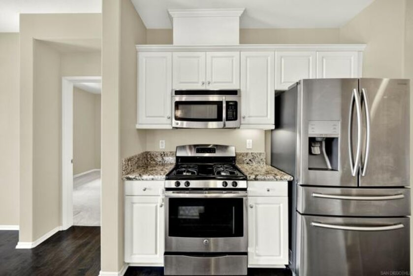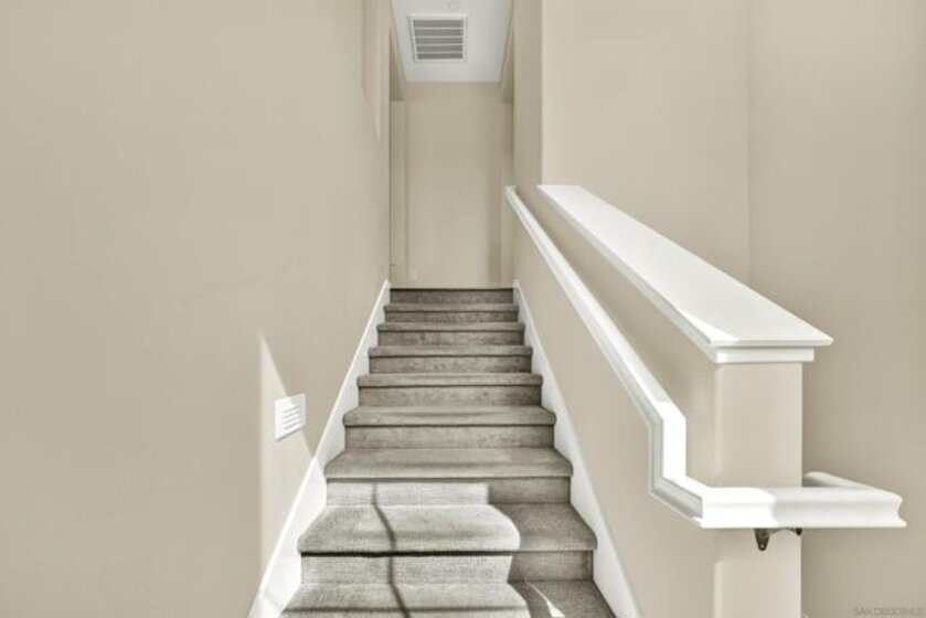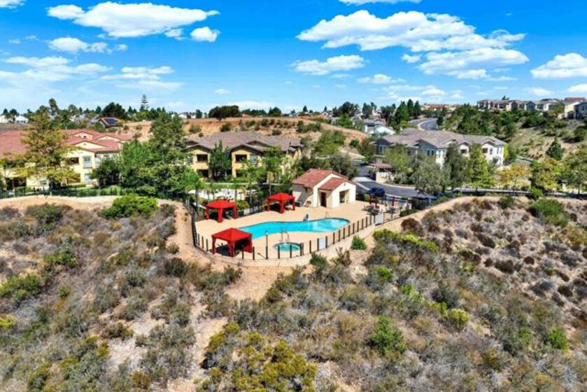 Nestled in the desirable Sorrento Ridge community, this corner lot, light-filled 2-bedroom, 2-bath condo offers an ideal blend of comfort, privacy, and convenience. The upper-level layout welcomes you into an inviting living space featuring vaulted ceilings, abundant natural light, and beautifully maintained hardwood floors throughout the kitchen, dining, and living area, offering a seamless flow and warmth through the property. A southwest-facing balcony, with panoramic views is the perfect spot to unwind while taking in serene canyon and greenbelt views. The primary suite enjoys complete privacy with its own attached full bath, while the second bedroom and additional full bath provide flexibility for guests or family. A bonus nook offers an ideal space for a home office, reading area, or creative studio, perfectly suited to modern living needs. An attached garage provides convenience and secure parking with direct access, with an additional reserved parking spot steps away. Residents enjoy access to a range of community amenities including a pool, playground, and beautifully maintained grounds managed by the HOA. Located just minutes from Sorrento Valley’s biotech and tech hubs, this home offers quick access to hiking trails, shopping, dining, major transit routes, and the coast—making it a peaceful retreat that remains close to everything. This is your opportunity to own a low-maintenance, contemporary sanctuary in a prime San Diego setting.