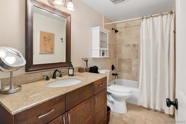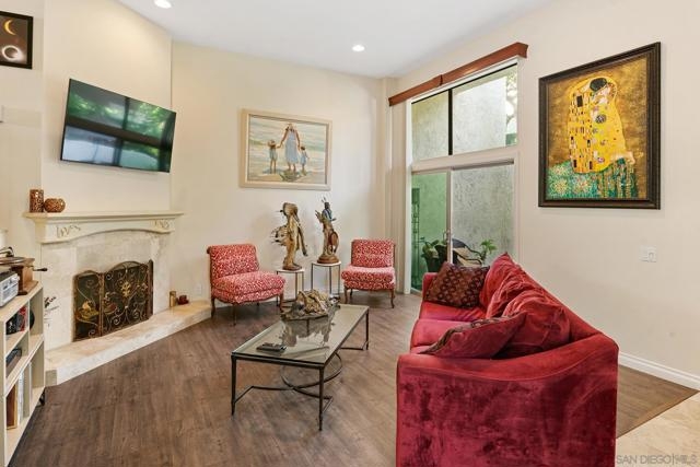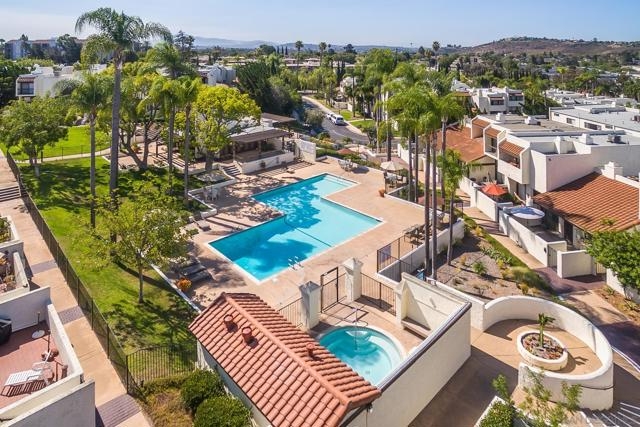 Highly coveted end-unit in Vista Del Cerro! Spacious living room with soaring ceilings, gas fireplace, and access to a private patio. Gourmet kitchen with granite counters, stainless steel appliances including an electrolux double oven, and breakfast bar. Upstairs features a primary suite with tall ceilings, ample closets, and a private balcony, plus two additional bedrooms. New floors and dual pane windows. Gated front patio and attached two-car garage. Community offers park-like grounds, pool, and clubhouse. Walk to highly rated Dailard Elementary and Patrick Henry High School. A true must-see!