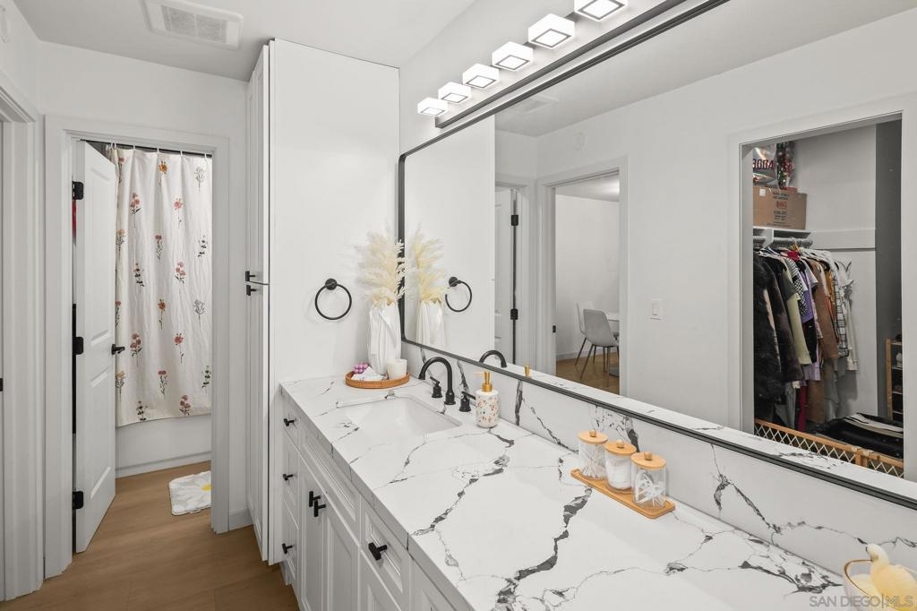 Discover this move-in ready, beautifully updated condo in a prime location on Friars Rd—truly a rare find! This clean, modern home features an open and spacious layout, with a bright living area filled with natural light. The inviting entry flows into a dedicated dining area. Enjoy a stylish kitchen with beautiful quartz countertops, and step out onto your large private balcony overlooking lush hill as a backdrop. The spacious bedroom includes a walk-in closet, and the large bathroom offers comfort and convenience. (See supplement below) Community amenities include a sparkling pool, relaxing jacuzzi, exercise room, and a club room with kitchen—plus secure building access and parking. Low HOA fees add to the appeal. Located directly across from the exciting new Riverwalk Planned Community (under construction), you’ll soon have access to more retail shopping, office space, a transit stop, parks, parking, and open space along the scenic San Diego River. Minutes from USD, Mission Bay, Downtown, and the airport, this is truly the best central location in San Diego. Don’t miss your chance to own this exceptional condo—schedule a tour today!