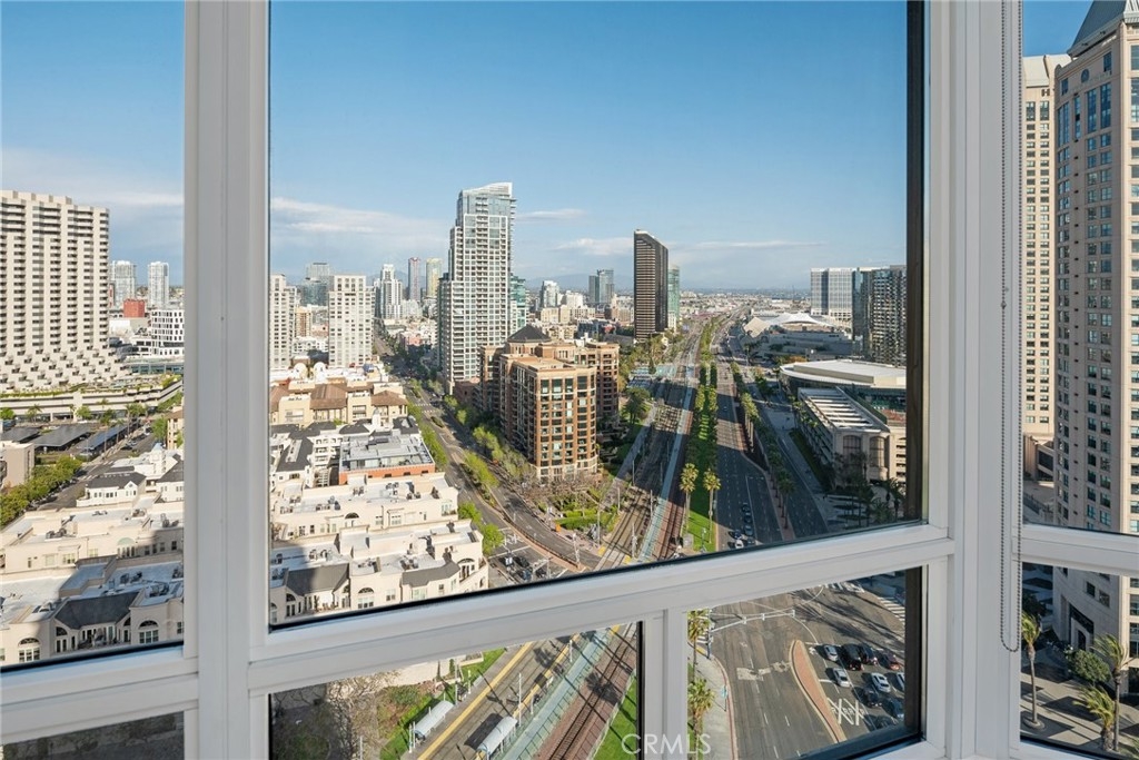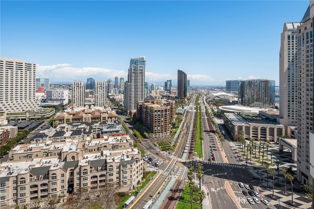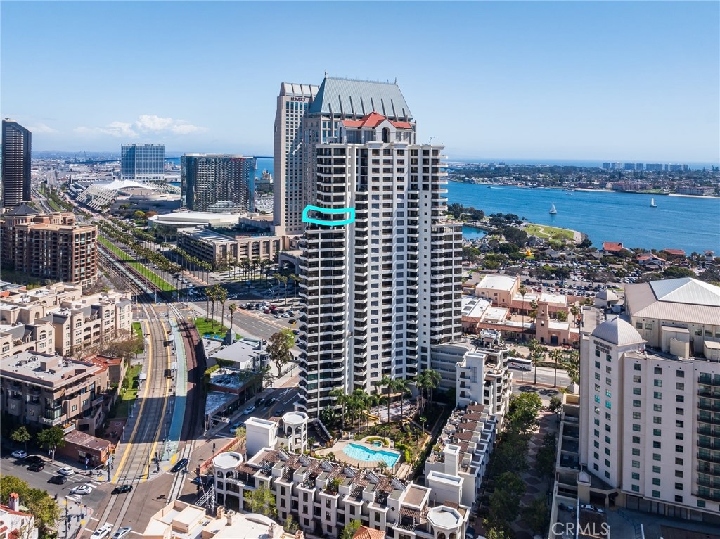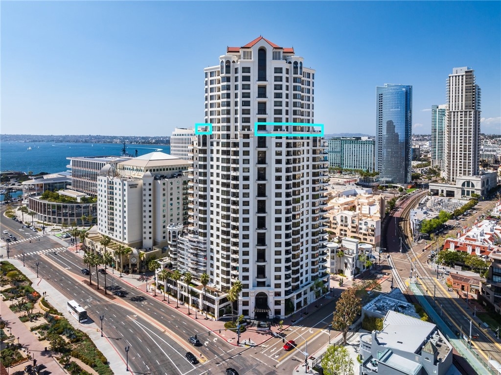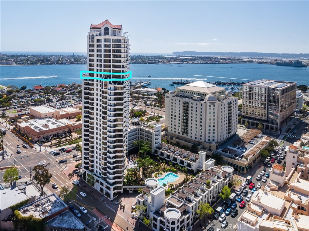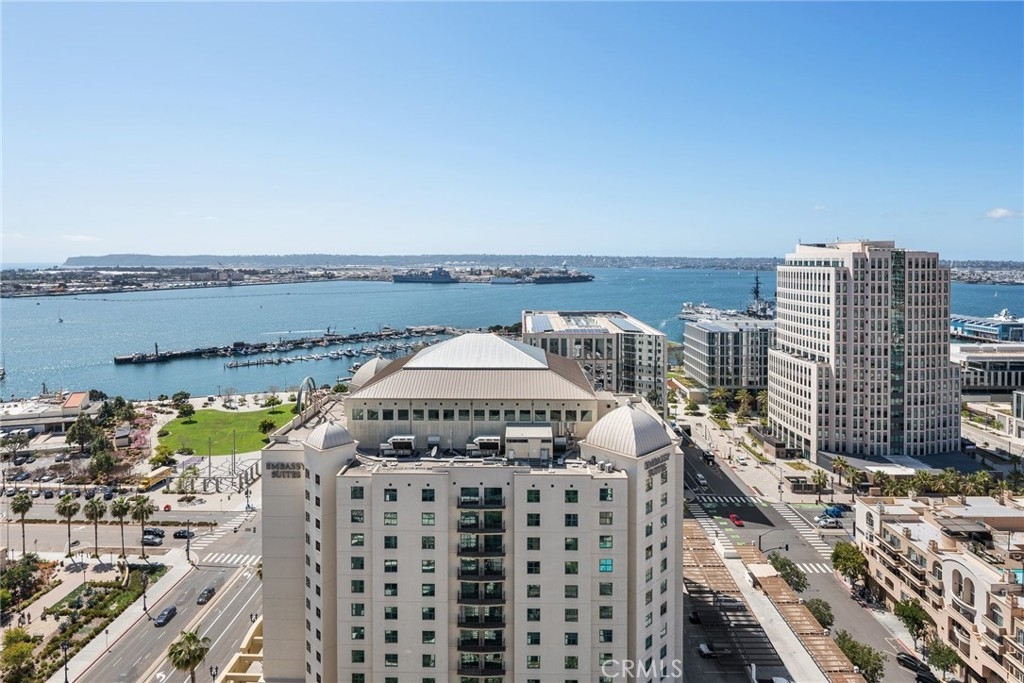 CITY AND OCEAN VIEWS FROM EVERY WINDOW! WRAP AROUND BALCONY! RESORT LIVING AT ITS FINEST! 24 HOUR GUARD IN THE LOBBY FULL CONCIERGE BUILDING. 2 BEDROOM & 2 BATHROOM & 2 PRIME PARKING SPACES ON THE 1ST AND 2ND FLOOR! STUNNING JAW DROPPING VIEWS! OCEAN AND CITY VIEWS WRAPPING AROUND ENTIRE UNIT! YOU WON'T BELIEVE THIS TILL YOU SEE IT. PICTURES DO NOT DO THIS VIEW JUSTICE! TRUST ME COME AND TAKE A LOOK! THIS UNIT IS THE ONLY FLOOR WITH EXRTRA WRAP AROUND PATIO. A LARGE PRIVATE STORAGE ON LEVEL P 1 FOR BIKES, BOXES, SURFBOARD ECT. THERE IS ALSO A GYM, BIKE ROOM, COMMUNITY POOL, BBQ AREA AND CLUBHOUSE FOR PARTIES. WALKABLE TO SEAPORT VILLAGE, WATERFRONT, PETCO PARK, SHOPPING AND RESTAURANTS. HOA INCLUDES WATER, TRASH, GAS AND 24 HOUR GUARD AND FULL CONCIERGE IN BUILDING. ALL THESE AMENITIES AND VIEWS FOR UNDER 1.8 MILLION IS A STEAL!!!