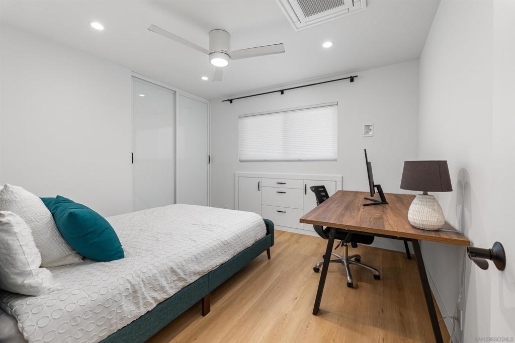 Seller financing available. Nestled in a serene canyon setting, this stunning townhome was meticulously remodeled over 12 months from top to bottom. The gorgeous kitchen has two-toned cabinetry, quartz counter-tops, induction range, reverse osmosis water filtration, and stainless steel appliances. Each bathroom is modern with thoughtful touches such as a heater built into the primary bathroom vanity. The home feels bright and open with tons of natural light from the new Milgard windows assisted by the new paint w/ smooth skim coat finish and light luxury vinyl plank flooring. The second bedroom has custom built in drawers for extra storage. The home also boasts a new a/c mini-split system throughout with recessed cassette style in the bedrooms and new lighting throughout, and a front patio and back deck. The two-car attached garage features EV charging, new water-heater with recirculating pump (for on demand hot water), stacked washer/dryer, stainless steel sink, and additional storage/coat closet right outside the garage. The home can be sold furnished. Within the complex there is a pool, tennis and pickleball courts, volleyball court, clubhouse, community garden, and guest parking all surrounded by Eucalyptus trees on 5 acres of land. This quiet, tucked away location is still close to freeways, shops, restaurants, and Mission Bay. The complex is also VA & FHA approved as well.