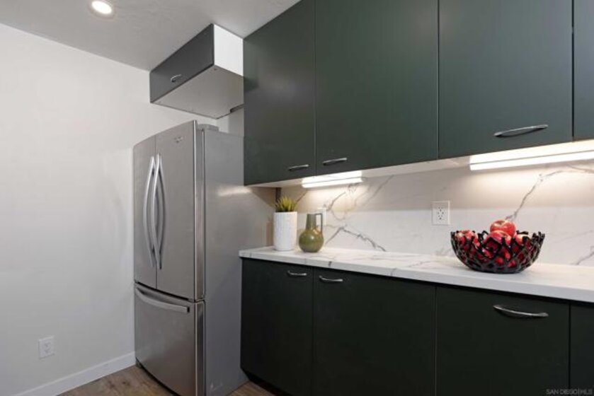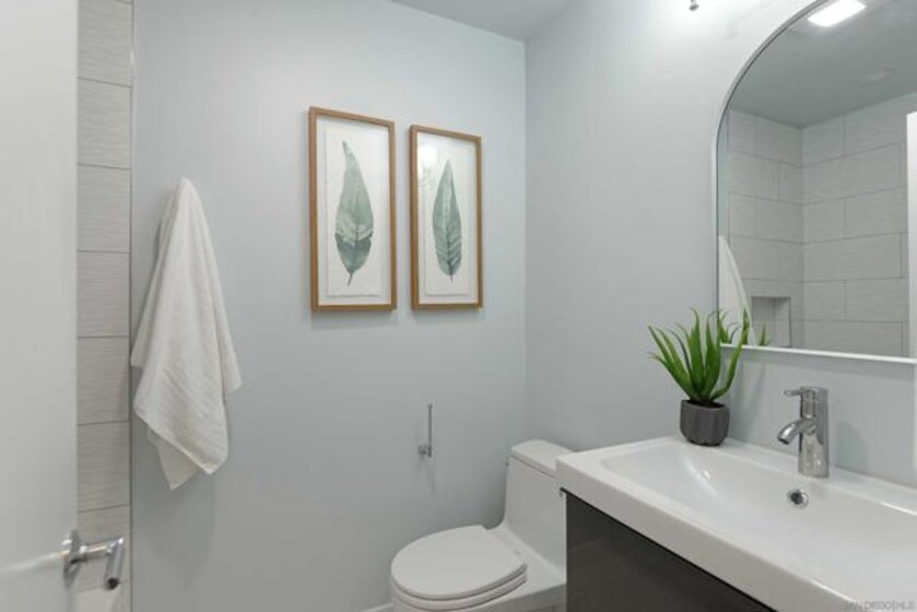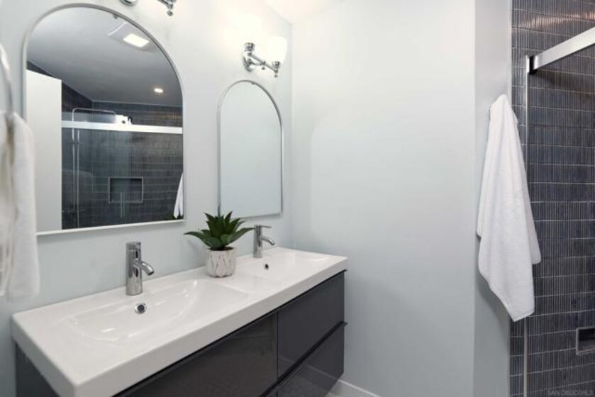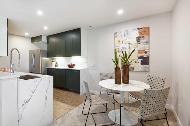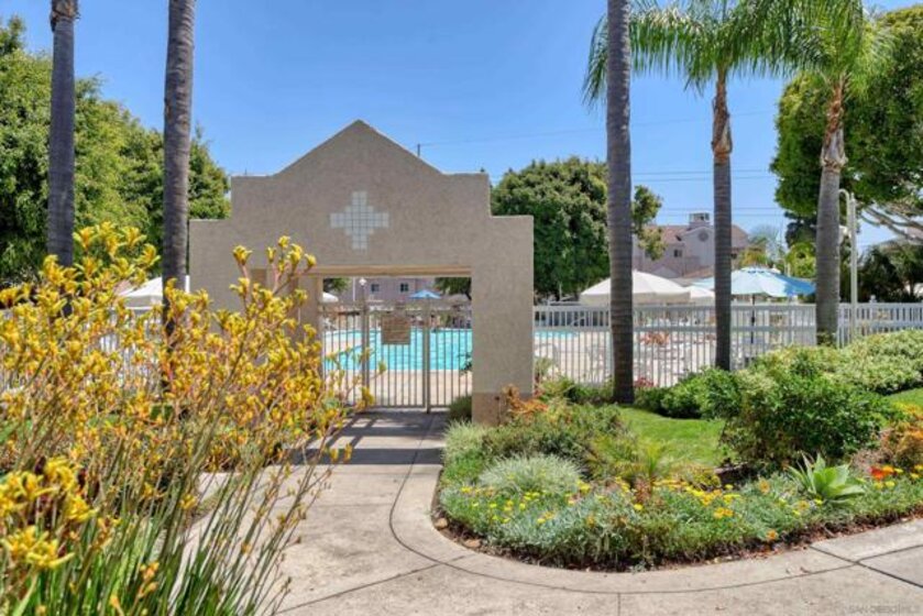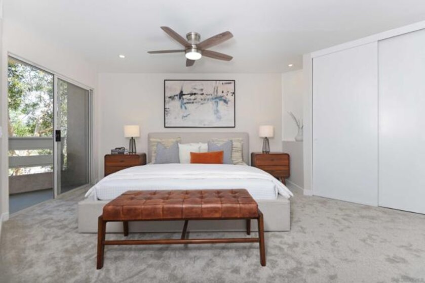 Elegantly remodeled unit (no stairs) features designer kitchen with quartz counters, stainless steel appliances and sleek cabinetry. Tasteful transformation also includes updated bathrooms, tankless water heater, recessed lighting, A/C and new washer dryer. Split bedrooms each enjoy private balcony with treetop vistas. Complex is complete with resort-like pool, spa and fitness center. Central location with proximity to shopping, USD, golf course, and restaurants offers a lifestyle of convenience.