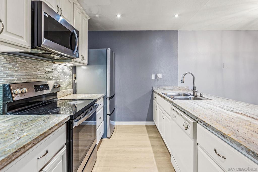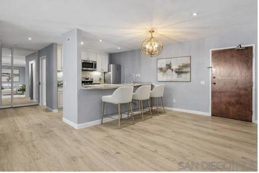Outstanding remodel and upgraded, this spacious 1-bedroom residence offers one of the largest floor plans in the community. An open, airy layout is complemented by a dual-zone A/C, heating, and humidifier system for year-round comfort. Beautifully updated kitchen features bold designer finishes, new cabinetry, upgraded countertops, and stainless-steel appliances. Stylish laminate flooring and decorative moldings throughout create a clean, modern, and inviting living space. Two garage parking spaces and a highly desirable location in the heart of the Golden Triangle. Conveniently situated near public transit, including trolley and bus lines, outdoor recreation at Doyle Park Recreation Center, everyday shopping at Vons La Jolla Colony, and premier dining, shopping, and entertainment at Westfield UTC. Easy access to Interstate 5 and nearby shopping centers enhances overall convenience. Turnkey and move-in ready, this home presents an opportunity to own in one of San Diego’s most sought-after locations, La Jolla.