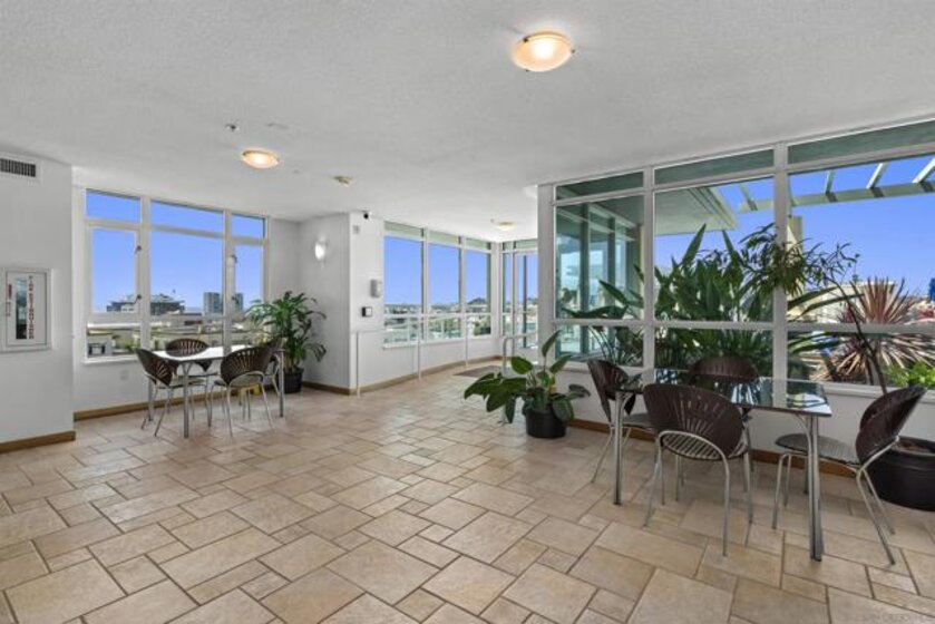 Experience serene treetop views from this west-facing, end-unit residence at Discovery, complete with a private balcony overlooking the peaceful side of the community. With custom paint tones throughout, the upgraded chef’s kitchen is a true centerpiece, showcasing new Calacatta quartz countertops, top of the line GE Profile stainless appliances, painted timeless shaker cabinetry and a deep, single-basin stainless sink combines sleek style with practical ease for cleanup, and recessed lighting for a sleek, modern look. The open-concept living area is highlighted by luxury vinyl plank flooring, expansive windows that flood the space with natural light, a charming window bench seat with built-in storage, track lighting, remote shades, and a cozy fireplace. The spacious primary suite is thoughtfully designed with custom California Closets, a built-in dresser, and remote shades for effortless privacy. The beautifully remodeled guest bath features a walk-in shower and designer finishes. Additional conveniences include one secure parking space near the elevator and a dedicated storage unit. All this in charming, tree-lined Cortez Hill—Downtown San Diego’s hidden gem, celebrated for its tranquil ambiance and sophisticated urban lifestyle. Perched atop Cortez Hill, Discovery offers resort-style living in one of Downtown San Diego’s most charming and established neighborhoods. Residents enjoy secure underground parking, 24-hour concierge service, an elegant lobby, and thoughtfully designed shared spaces including the lush 2nd-floor Fern Grotto Garden and a stylish social lounge. The business center is equipped with commercial-grade office tools, and the 10th-floor rooftop deck features a heated lap pool, cabanas, spa, BBQ grills, and panoramic city views. A top-tier fitness center includes a sauna and steam room for full wellness access. Just steps away are local favorites like Tweet Street Park and Hob Coffee, with Little Italy and Balboa Park within walking distance. Plus, enjoy quick freeway access to I-5 and Hwy 163 from this peaceful urban retreat.