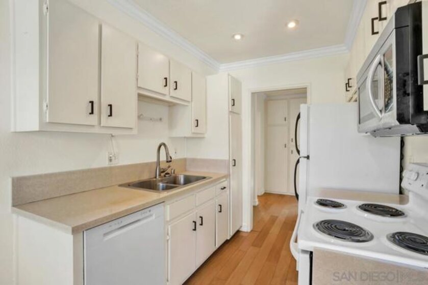 Welcome to this beautifully updated and highly sought-after upstairs unit in the ideally located Casa Dorada community. This home offers the perfect blend of privacy, convenience, and comfort. Featuring beautiful wood flooring and custom blinds, the interior feels modern, bright, and move-in ready. Home is freshly painted and updated with modern lighting and kitchen features. Enjoy peaceful living as the residence features a private balcony and backs up to a quiet, serene hillside. Community features laundry services, a gorgeous pool and spa, BBQ area, and more. Just minutes from major freeways, SDSU, Cowles Mountain, shopping, restaurants, and more, this home delivers exceptional access to everything San Diego has to offer. Don’t miss this opportunity to own a private retreat in a prime location. Home is virtually staged.