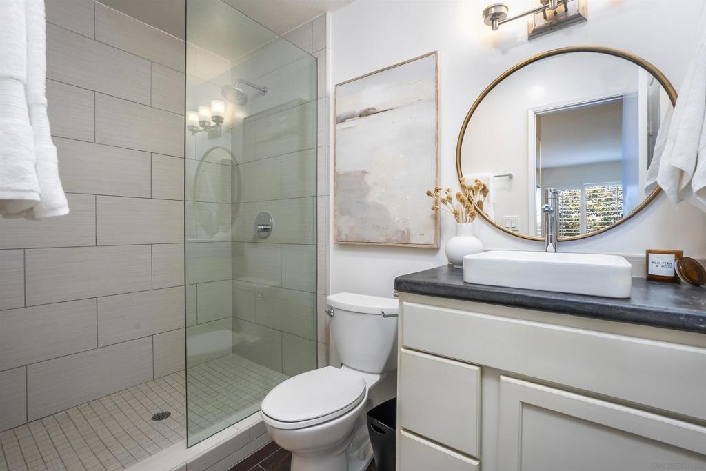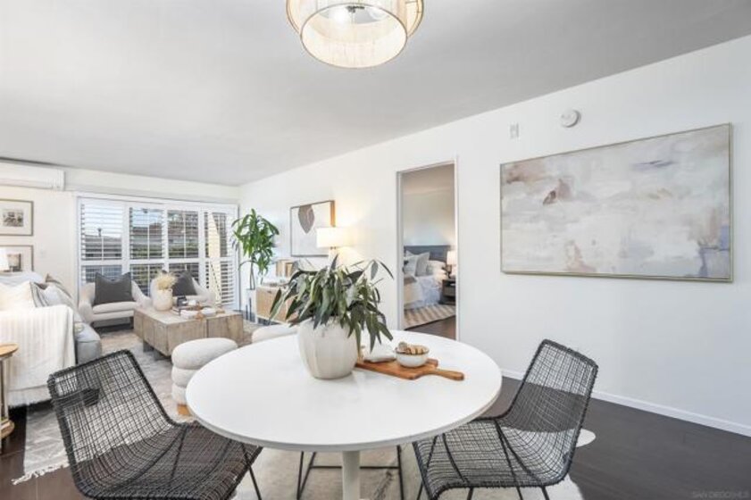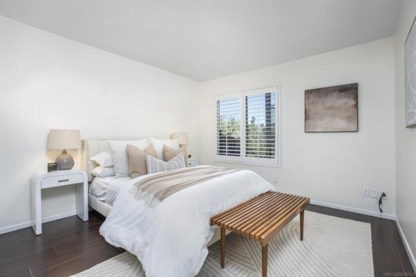 Fantastic location less than one mile to USD, set in a quiet hilltop neighborhood above Fashion Valley & Friars Road. This move-in-ready first-floor unit offers a smart, versatile layout ideal for roommates or working from home, with two spacious bedrooms and a generous great room. The home has a hip, modern feel, featuring wood-like tile floors and concrete countertops that give the space a clean, contemporary edge. Plantation shutters throughout add warmth and privacy, while the living room and primary bedroom are equipped with newer mini-splits for both cooling (A/C) and heat for efficient, year-round comfort. A west-facing balcony, extending from the living room to the primary bedroom, is perfect for enjoying cool coastal breezes. Just minutes to beautiful beaches, local eateries and breweries, major freeways, and Mission Bay’s trails and parks, this home delivers an ideal balance of convenience, comfort, and lifestyle. Plenty of street parking is available for guests.